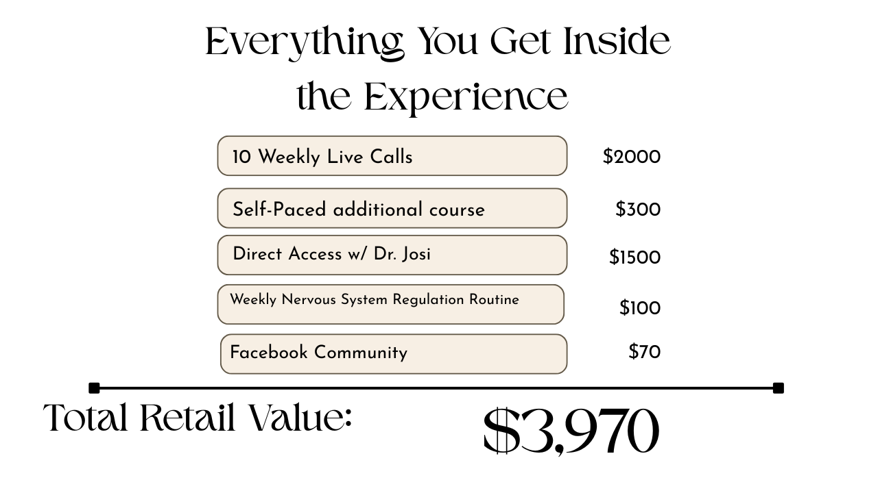 The course is an addition to the experience, thoughtfully structured and aligned to move through the basics of nervous system health, making it easy to find exactly what you need when you need it. Whether you’re looking for daily lifestyle guidance or a specific topic, it’s all accessible in one place.